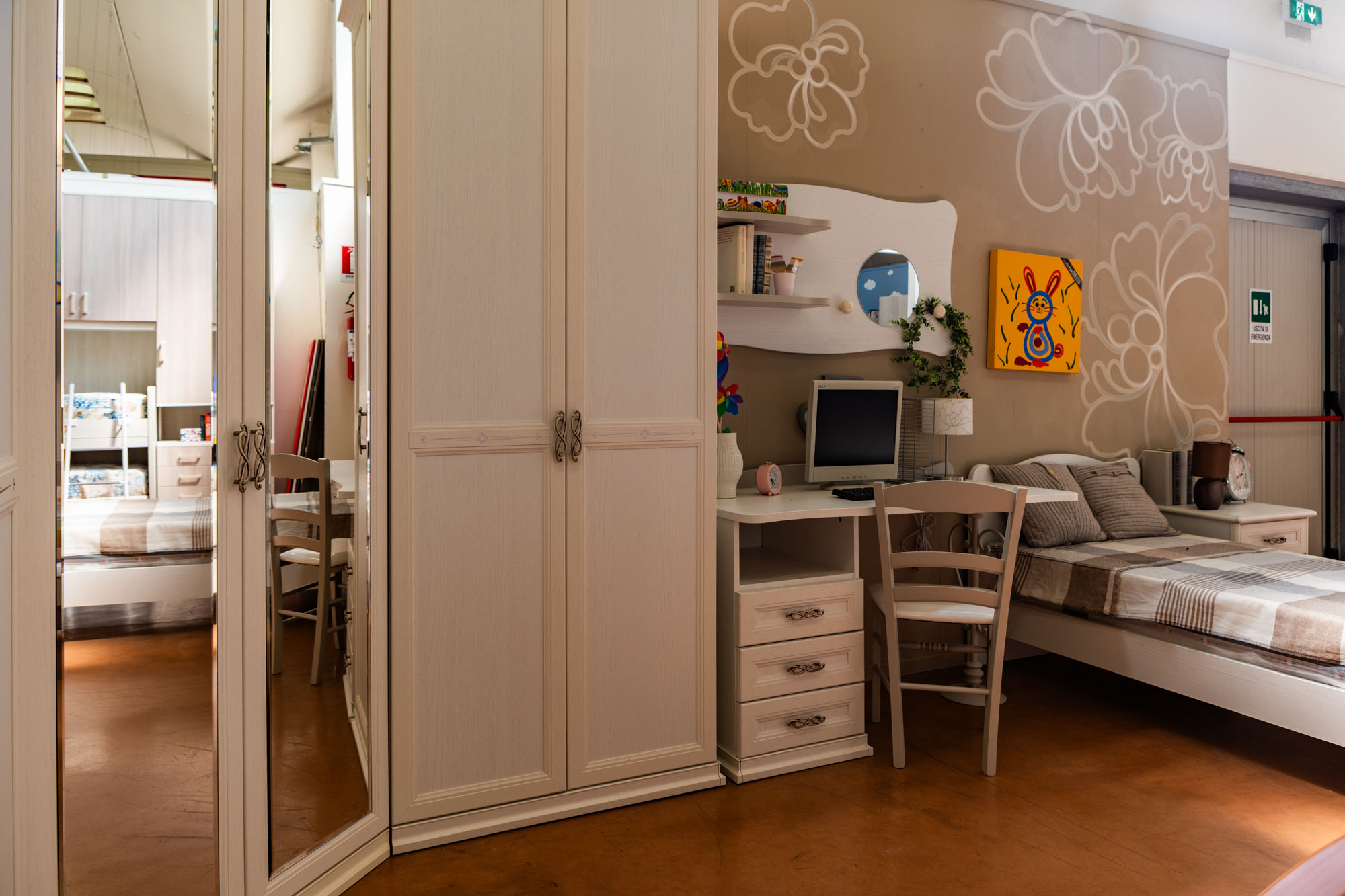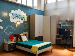 Vieni a visitare il nostro showroom a Gavello di Bondeno (Ferrara) per scoprire la cameretta ideale per il tuo bambino. I nostri modelli variano da quelli classici a quelli moderni, per i più piccoli e per i ragazzi.E se la famiglia si allarga? Nessun problema! Offriamo soluzioni anche per camerette doppie e triple dove scambiarsi idee, giochi e sconfiggere insieme i mostri sotto al letto.